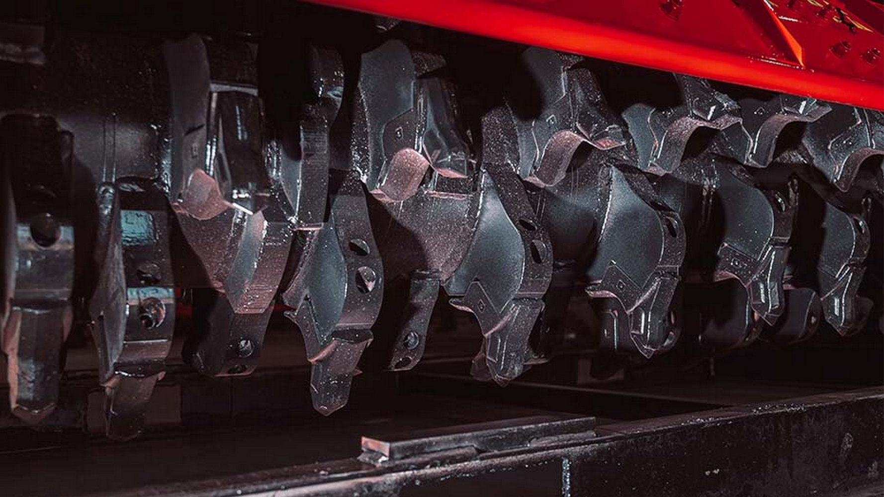 Фреза оснащается молотками из твердого сплава, которые обладают высокой прочностью, а ее мощности достаточно для обработки и измельчения растительности до 40 см в диаметре с глубиной фрезерования до 30 см.
